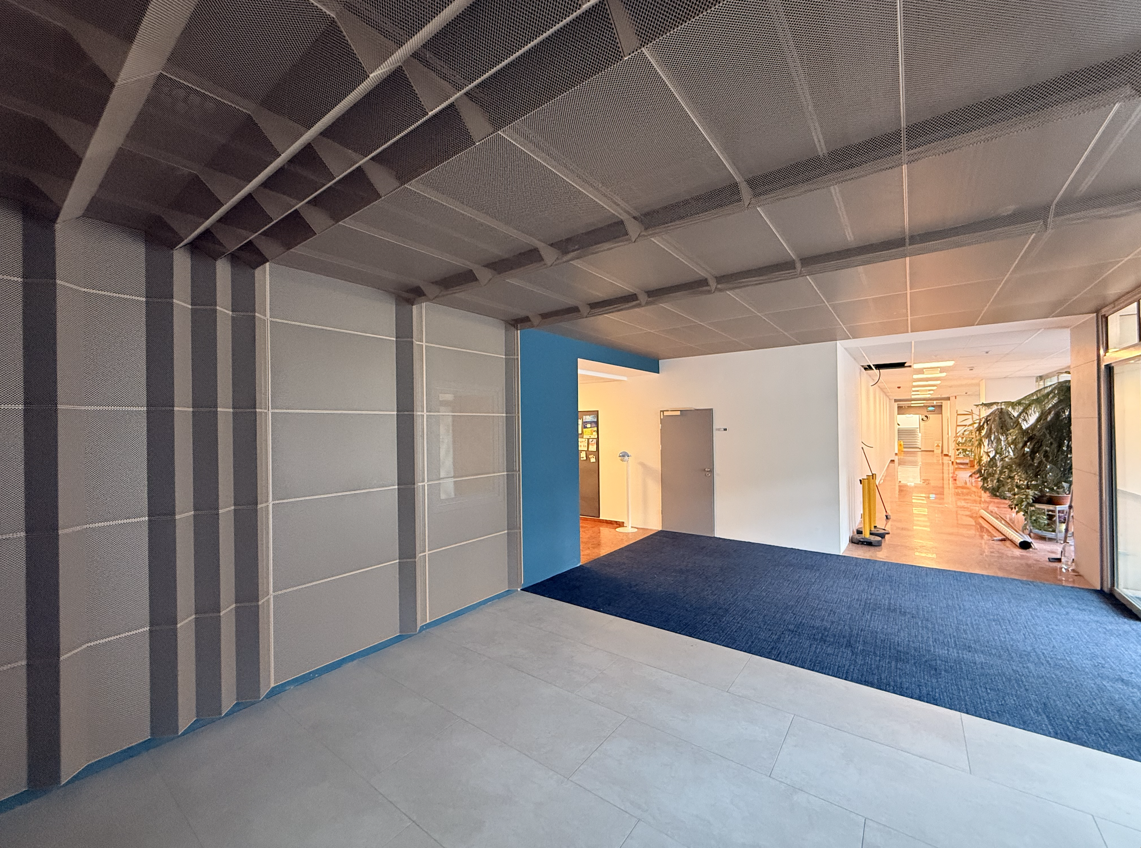 Egyedi fém álmennyezet és fali burkolat a Richter központban