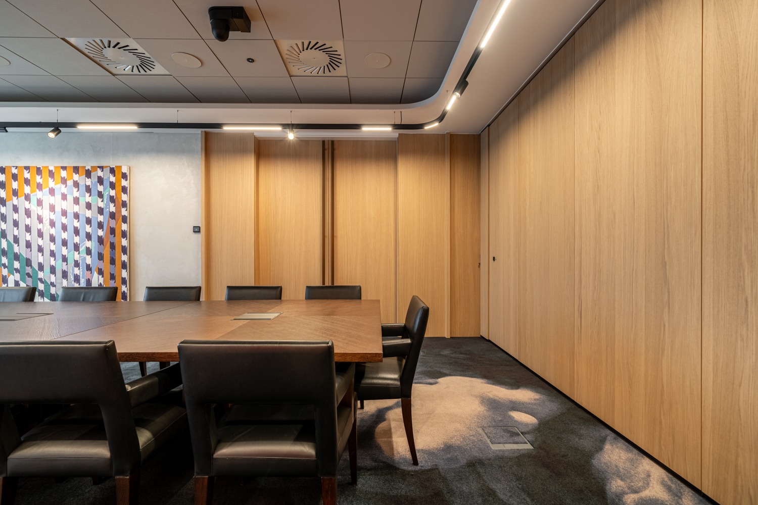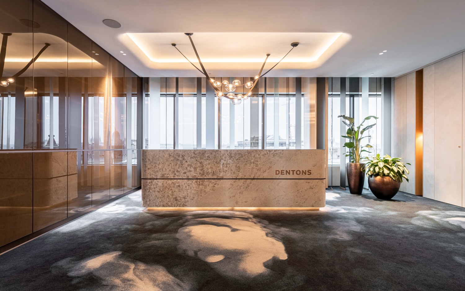 A bemutatott fotókon látható, mely a Dentons irodában készültek, hogy a fém rácsos álmennyezet, mintegy körül öleti a szövet mennyezetet, melyek egyedi rácsosztással készültek, az egyedi belsőépítész igényeknek megfelelően.