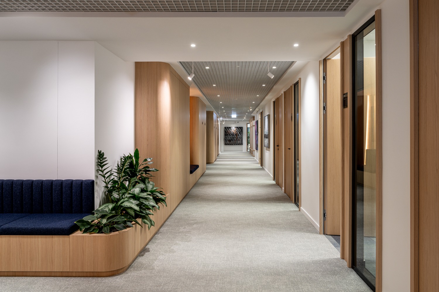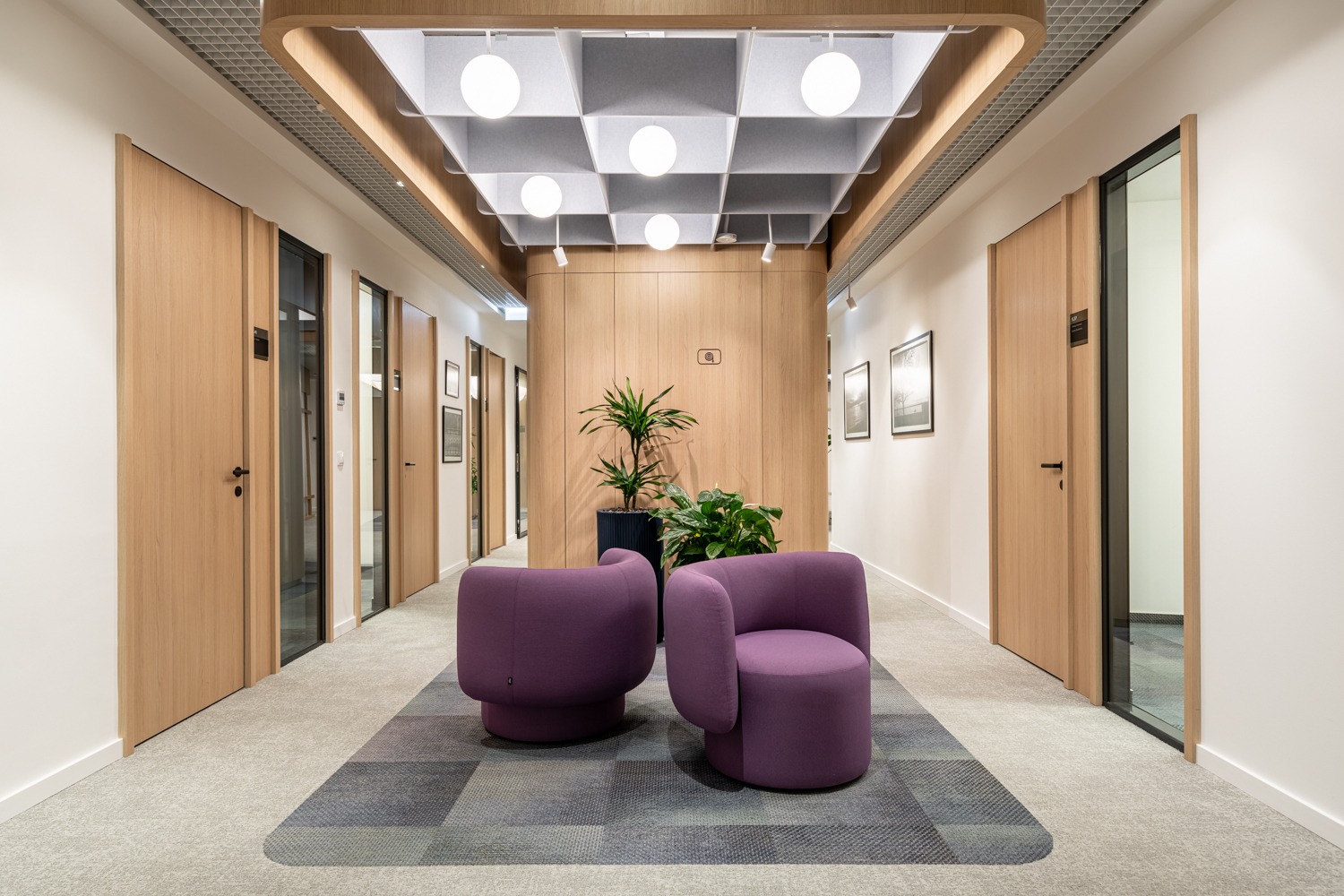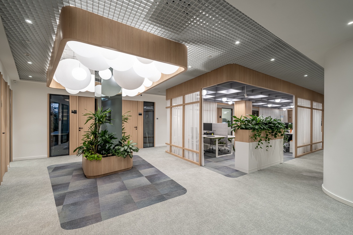 Újabb tetszetős irodai álmennyezeti beszállításon vagyunk túl. Ahol elhelyezésre került az általunk forgalmazott Echoshape szövet rácsos álmennyezete és a CBI Europe Spa rácsos fém álmennyezete is.
