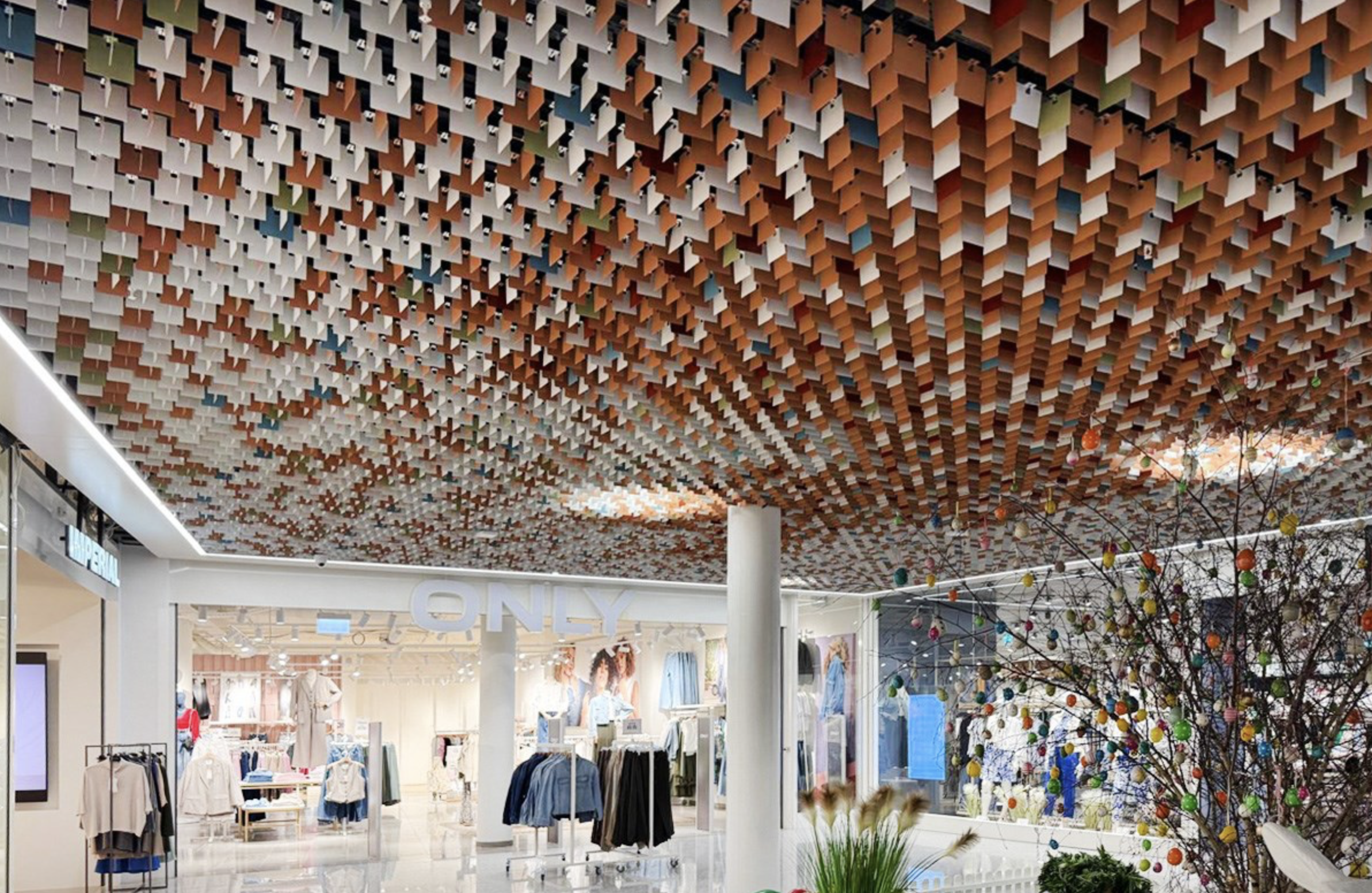 A mennyezetet magát nem sok rendszer elem alkotja, tervezése, szerelése egyszerű. Könnyen függeszthető a födémtől, könnyen alakítható. Ami a nehézséget adja a formák, színek sokasága. Mégis ezt hogyan rendezzük egy alakzattá? Ez adhatja a nehézséget, mindenesetre nagyon szép és vidám tereket alkothatunk. Úgy érezhetem ebben a bevásárló központba jó betérni. Vegyüljünk is el a kínálatban…