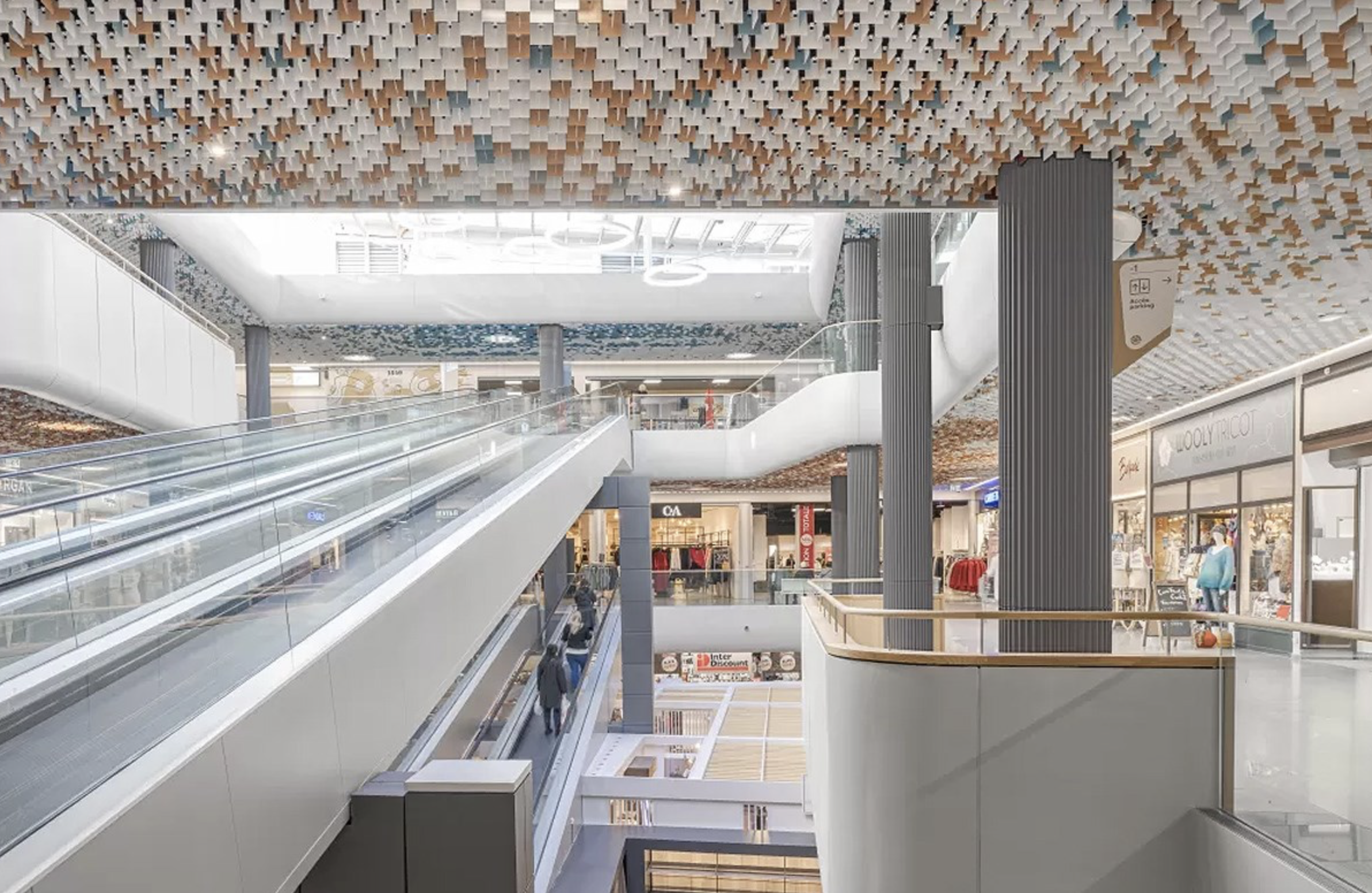 A bemutatott munkán jól látható, hogy játszottak a színekkel, ezt mindegy kihasználták, az alkalmazott felület tónusos lett, mely sugározhatja a bevásárló központ arculatát. Vagy akár a szinten elhelyezett üzletek jellegét. Minden esetre ez a lehetőség tág teret ad a fantáziának!